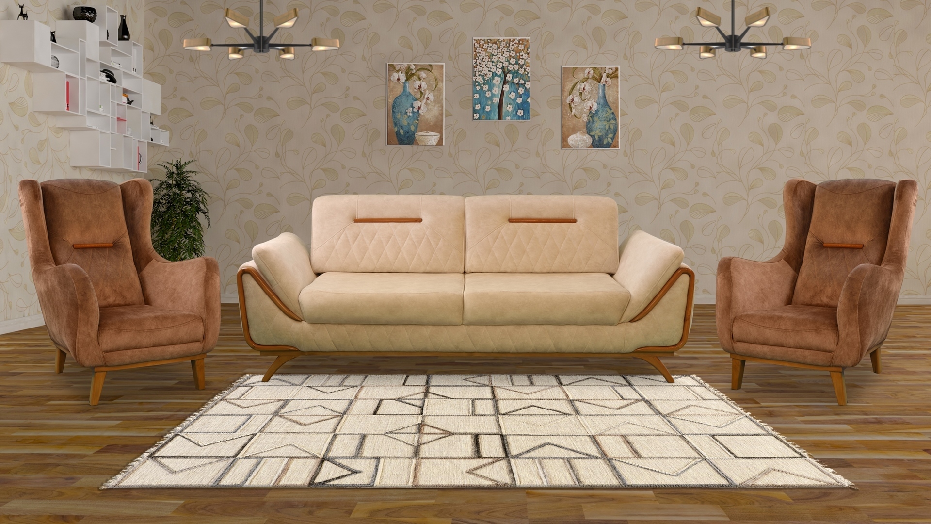مدلی ۸ نفره که باعث میشود که کار پذیرایی از مهمانان با تعداد نفرات بالا راحتتر میشود؛ تکیهای این کار با پشتی بلندی که دارد نشیمن بسیار راحتی را فراهم کرده، فوم کف این کار هم دارای ۵ سال ضمانت است. که اندازه های آن به شرح زیر است: ابعاد سه نفره: طول235* عرض85، ارتفاع100 ----- ابعاد تک نفره: طول85* عرض70* ارتفاع 100