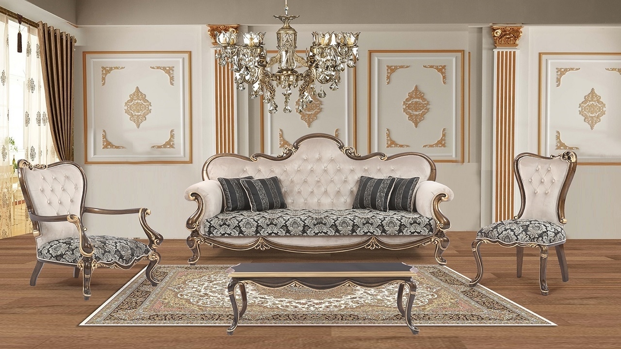 طراحی متفاوت و چشم نواز مبل دیپلمات باعث زیبایی این مبل کلاسیک شده است. مبل کلاسیک دیپلمات با یک طرح موج دار در قسمت تاج و بالای مبل از تمام طرح های مبل های کلاسیک متفاوت است.ابعاد کار بدین شرح است: سه نفره: طول210* عرض87* ارتفاع112 ----- ابعاد یک نفره: طول85* عرض90* ارتفاع110----- ابعاد صندلی میزبان: طول60* عرض55* ارتفاع108