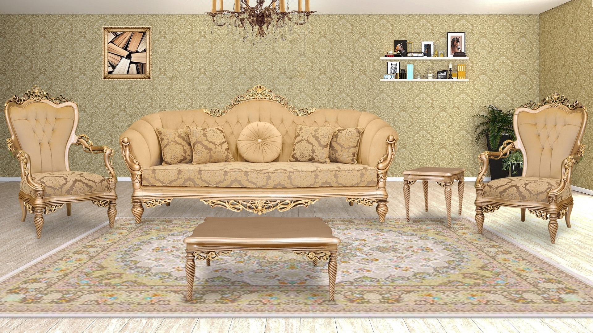 یک مدل نیمه استیل که دستههای کاناپه آن به صورت ترکیبی پارچه و چوب و نشیمن آن به صورت تشک جدا و مبلها به صورت تشک ثابت طراحی شده، که اندازههای آن به شرح زیر است: ابعاد سه نفره: طول222* عرض85* ارتفاع110 ----- ابعاد یک نفره: طول87* عرض75* ارتفاع120 ----- ابعاد صندلی میزبان: طول55* عرض55* ارتفاع118