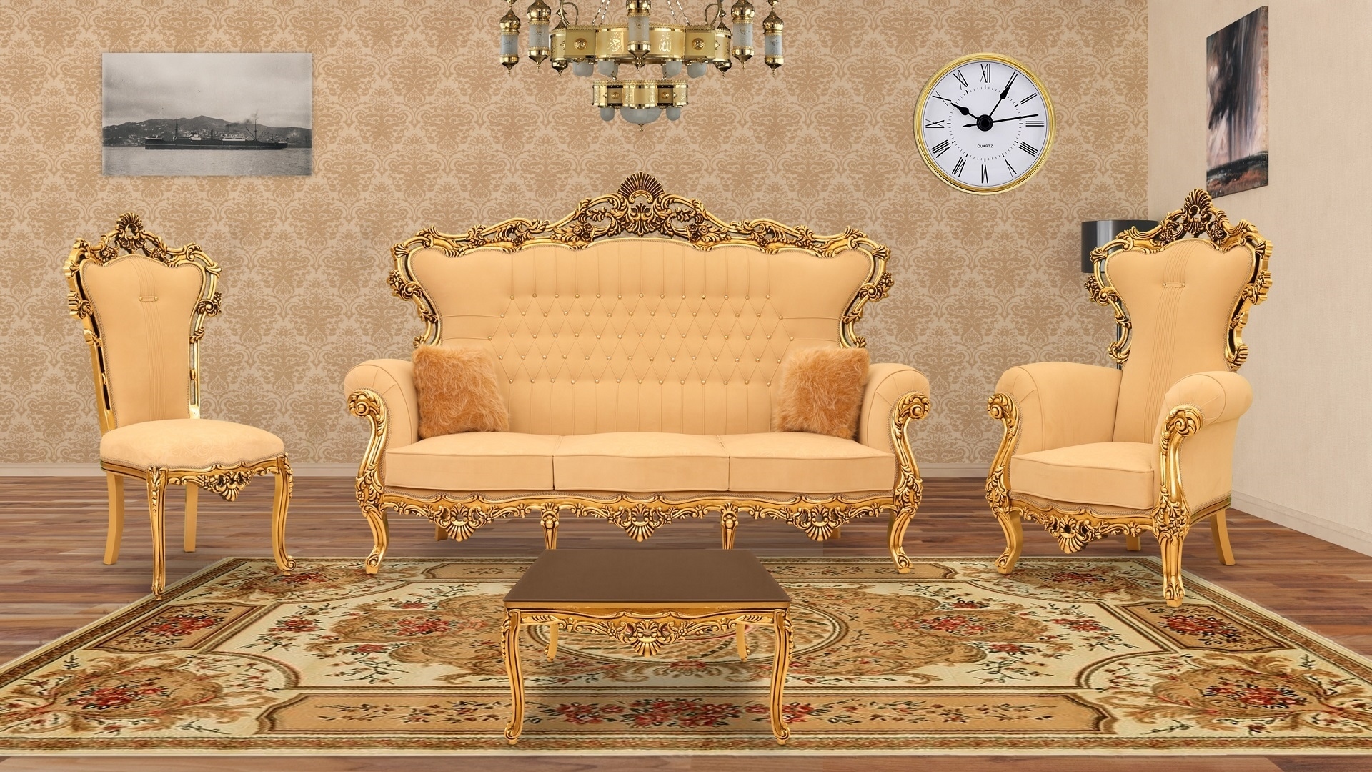 این مدل دسته متکایی که کلیه مبلها و کاناپه به صورت تشک جدا طراحی و رویهکوبی شده، در این مدل از طرح مغزیدوزی و در کاناپه از لمسه دوزی استفاده شده که البته قابلیت تغییر در آن وجود دارد که اندازههای آن به شرح زیر است: ابعاد سه نفره: طول205* عرض80* ارتفاع145----- ابعاد یک نفره: طول90* عرض75* ارتفاع135 ----- ابعاد صندلی میزبان: طول65* عرض55* ارتفاع128