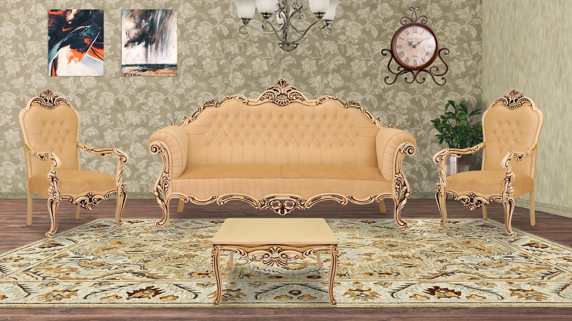 این مدل در رده مبلهای نیمه استیل قرار دارد، کلیه مبلها به صورت تشک ثابت و کاناپه به صورت تشک جدا و دسته متکایی آماده شده، همچنین رویهکوبی آنها به صورت لمسه دوزی تمام دست است که اندازههای آن به شرح زیر است: ابعاد سه نفره: طول200* عرض80* ارتفاع115 ----- اندازه یک نفره: طول75* عرض70* ارتفاع120 ----- اندازه صندلی میزبان: طول50* عرض55* ارتفاع110