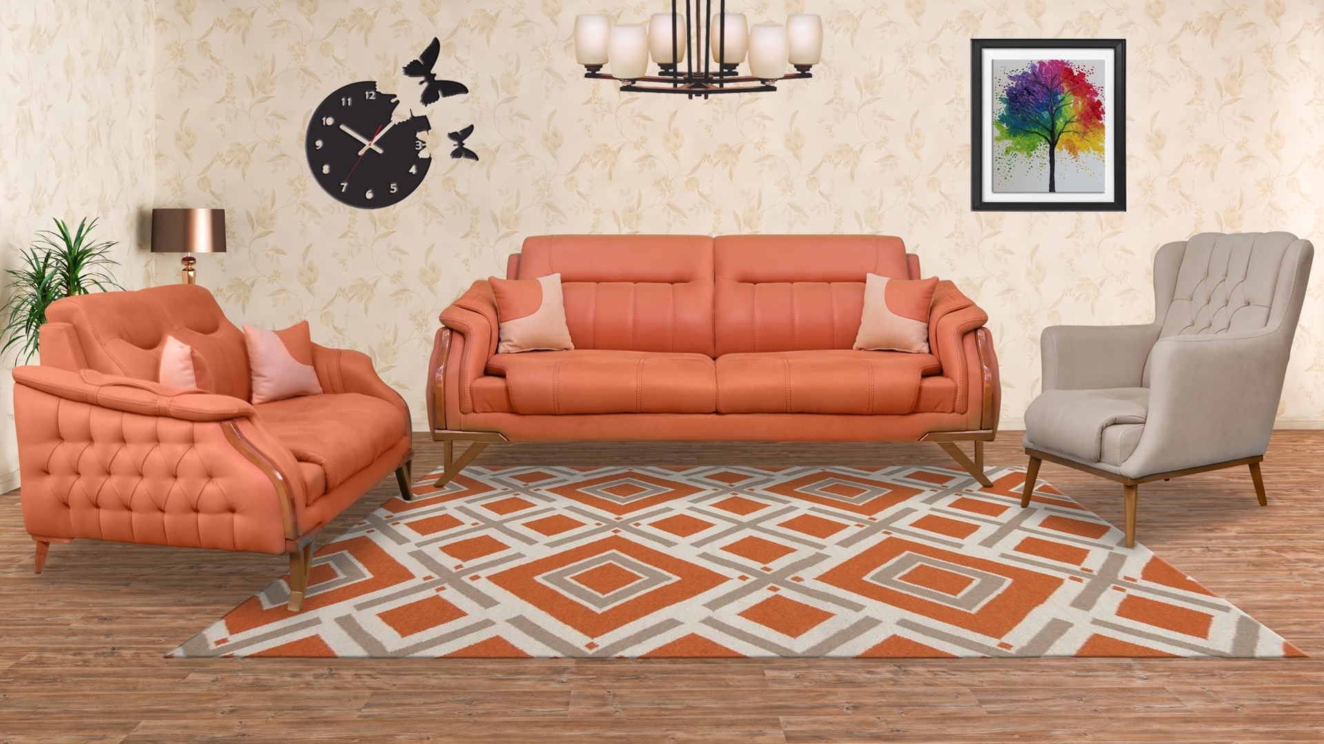 یک مدل لاکچری و خاص با رنگبندی فوقالعاده شاد و زیبا که لمسه آن تماماً دست است و دارای کوسن که اندازه های آن به شرح زیر است: ابعاد سه نفره: طول200* عرض83* ارتفاع80 ----- ابعاد یک نفره: طول70* عرض70* ارتفاع98